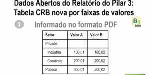 Dados Abertos - Pilar 3 Dados Abertos do Relatório do Pilar 3: Tabela CRB nova por faixas de valores Responsáveis pelos Dados Abertos, a tabela CRB foi reestruturada na futura versão 2.0.0 (link das ilustrações no corpo do artigo).